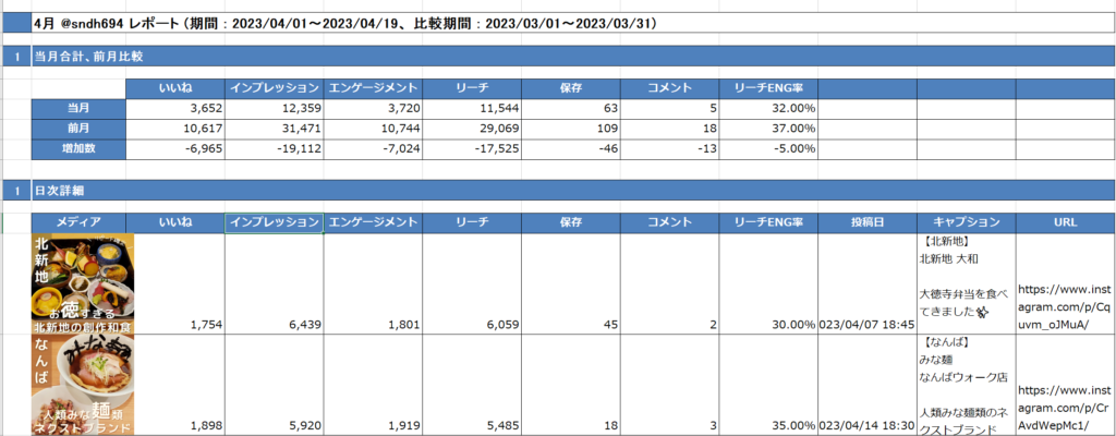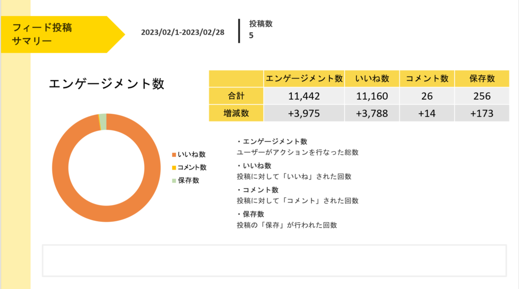 エンゲージメントの内訳を分析することができます。前月との比較も表示しております。