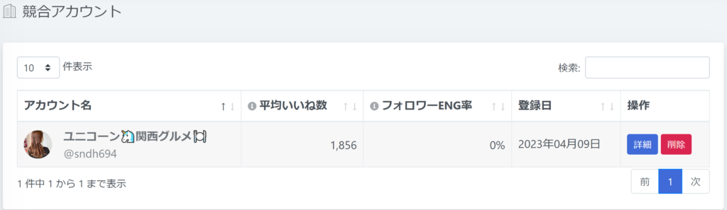 3.詳細ボタンをクリックすることで、競合アカウントのデータを閲覧することができます。