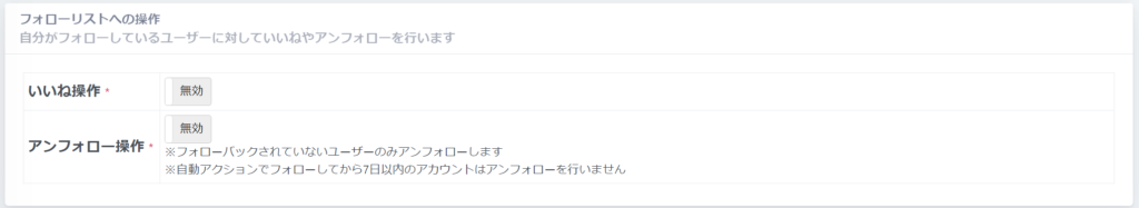 自動アクションでは、「いいね」・「フォロー」・「アンフォロー」の操作を自動で行うことができます。