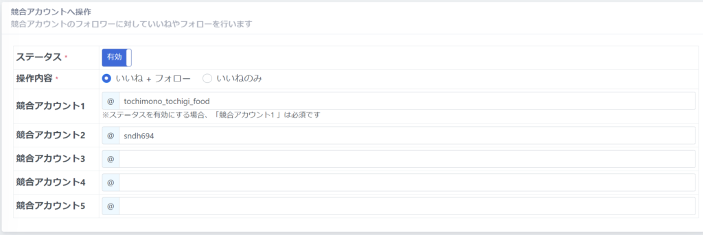 競合アカウントへの操作では、設定した「アカウントのフォロワー」へアクションを実行します。