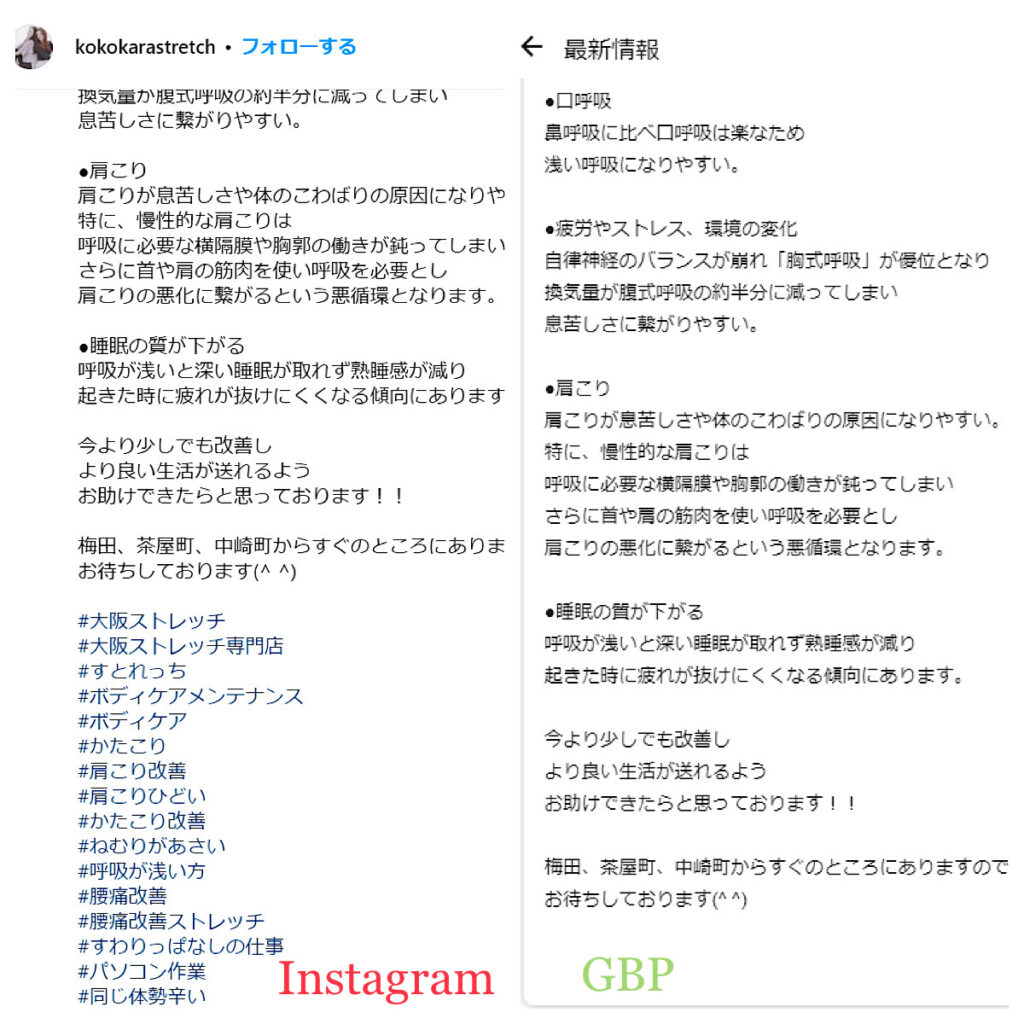 Instagram投稿で使用したハッシュタグを、GBP投稿時に自動で削除することができます。