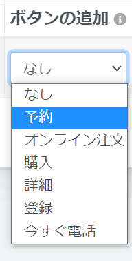 「予約」、「オンライン注文」等のボタンを付与することができ、URLを追加することにより、飛ばしたいページへ移動させることができます。