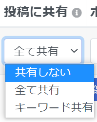 ①【投稿に共有】の欄で”キーワード共有”を選択します。